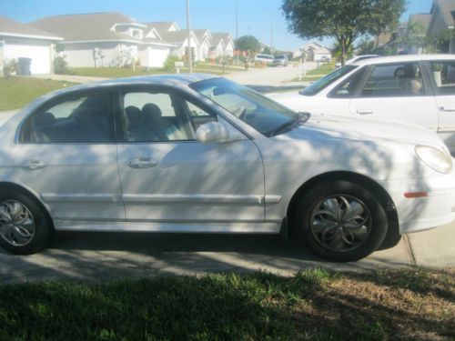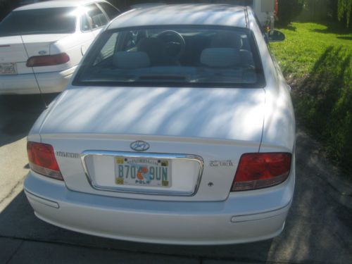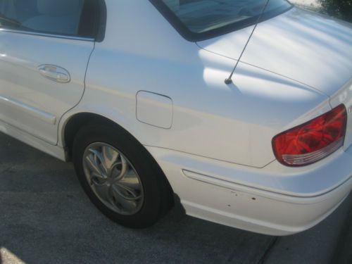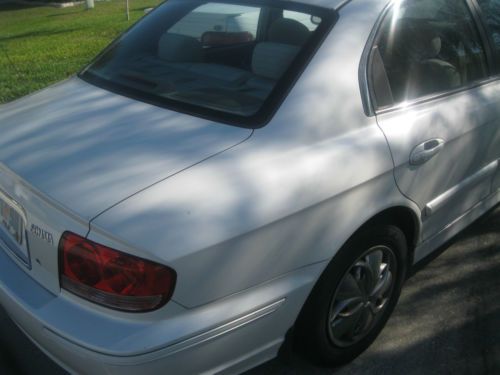 2004 Pearl white Automatic Hyundai Sonata. I am the original owner. This car is a dream, needs very little maintenence and has never been trouble. It serves us well every time we drive , short or long distance. It operates similar to how it operated when we rolled it out of the showroom in 2004. It has 2 newer fron tires. (3 months old) Much of the repair work has been completed at Hyundai. It is a solid car and looks great for its age. There are a few scratches and one missing window silver trim and a small pice of film peeled on shift gear.- can be replaced for cosmetic rerasons. Car looks great! Motor and transmission strong - everything works. AC/heat cd - cruise control, power windows and door locks. Child safety locks. Recently installed 2 new rear speakers. We are moving and only need one car so this is up for sale. |