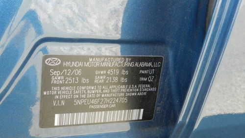 Purchased new by existing owner in April 2007 at Mazzei Hyundai in Antioch, CA. Regular oil changes can be documented by dealer service invoices. No collisions. No dents or scratches except 'dime" size paint scratch from unknown source on rear plastic bumper cover. (See photo) Beautiful Deepwater Blue color with gray leather interior. The Sonata Limited is the "Top-of-the-Line" model with a full set of safety and comfort features.