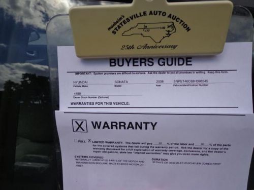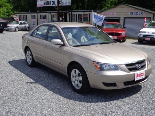 GET 30 MILES PER GALLON WITH THIS ONE-OWNER 5-SPEED SONATA!!! Visit our website http://www.Bossmotor.Com for more information and photos on this or any of our other vehicles.If you have great credit, good credit, or paying cash we welcome your business. We also welcome your business if you have bad credit, poor credit or no credit. We can get you approved ! Whether you have a job or not we can get you approved. Proof of income, 5 references, and drivers license are all we need to finalize your approval and the start of helping you rebuild or start your credit history. WE ACCEPT ALL TYPES OF TRADES...We have financing through BB&T, Credit Acceptance, Royalty Finance, Consumer Finance, and for those with no credit or have had credit problems in the past we have a program where you are automatically APPROVED. We have a first time buyers program, a no job program, and a warranty on every car. We are the number one Credit Acceptance dealer in NC and VA. What this means to you is if you have had trouble getting financed in the past we are able to guarantee that you will be approved on any car that you choose. We're Open Monday thru Friday from 830am till 630pm and on Saturdays from 8:30am till 3:30pm. 888-430-2318 at 206 Boone Road in Eden. Our service departments are open Mon thru Fri 9 till 5pm, 888-430-2318.DRIVE IN STYLE ! ! ! WE MAKE IT EASY ! ! ! U.R. Approved on every vehicle on the lot. Thank You for looking ! We hand select every vehicle and have a independent garage do the inspection. We feel that if one of our loved ones would not be safe in the vehicle, then we just will not sell it. WE ACCEPT ALL TRADES.
