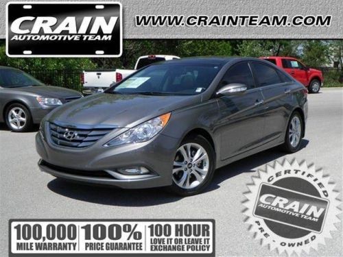 Contact Crain Hyundai of Bentonville today for information on dozens of vehicles like this 2013 Hyundai Sonata LIMITED. 888-292-2234 This 2013 Hyundai Sonata has great acceleration and wonderful styling without sacrificing exceptional fuel economy. The Hyundai factory warranty will protect you even after the purchase, and allow you to leave Crain Hyundai of Bentonville with peace of mind. With EPA fuel economy ratings of up to 24 mpg city, 35 highway, thanks to a direct-injection 4-cylinder engine, the Sonata has fuel-efficiency and power performance numbers that are both better than most base-model mid-size sedans. The Sonata Hybrid promises strong fuel efficiency. The Sonata is also lighter than many cars in its class and has a short 35.8-foot turning diameter that's also shorter than most other mid-size sedans. The Sonata also has a trump card in safety, as it's a Top Safety Pick by the IIHS. Warranty continues to be a strong selling point for the Sonata. Like with all Hyundai products; the Sonata includes a 5-year/60,000-mile fully transferable bumper-to-bumper warranty, 10-year/100,000-mile powertrain warranty and five years of roadside go FAR! Every new and pre-owned vehicle is backed by the Crain Commitment, including our 100% low price guarantee, a 100 hour love it or leave it exchange policy, and a 100 year 100,000 mile warranty. The Crain Team's Got 'Em! Give us a call at Crain Hyundai of Bentonville 888-292-2234. Combined Crain Hyundai's sales department has over 100 years of experience and dedication in taking care of our customers before and after the sale. We'll do our best to get you into the vehicle you have always wanted, and we strive to make buying or leasing a new vehicle a pleasant and rewarding experience.... That new Hyundai is waiting for you!