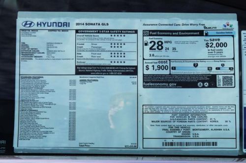 Sonata GLS, 4D Sedan, 4-Cylinder, 6-Speed Automatic with Shiftronic, FWD, Harbor Gray Metallic, and Gry Premium Cloth. Move quickly! Are you still driving around that old thing? Come on down today and get into this good-looking 2014 Hyundai Sonata! This Sonata is the car you are searching for to get you some outstanding fuel efficiency on your way to work! Come and check it out! Experience the Mungenast Difference! Visit us at mungenasthyundai.com. Mungenast Hyundai in Hazelwood just off of North Lindbergh and I-270 at 649 Dunn Rd, Hazelwood, MO 63042 888-212-1161 St Louis's Low-Priced Volume Hyundai Dealer! Remember, Hyundai makes the car, Mungenast makes the difference!Prices do not include additional fees and costs of closing, including government fees and taxes, any finance charges, any dealer fees, any emissions testing fees or other fees. All prices, specifications and availability subject to change without notice. Contact dealer for most current information. Advertised price includes all available factory and dealership rebates and discounts. See Mungenast Hyundai for complete details. This offer includes all rebates and dealer cash back to the dealer. Includes the $2000 HMF Bonus cash so this offer in not available with 0% financing. Includes Valued Owner Rebate of $500 and Military Rebate of $500. See a Mungenast Sales Associate for complete details and requirements for rebates. All Dealer Installed Accessories are extra. Come Experience the Mungenast Difference at Mungenast Hyundai. St Louis' Low Price Volume Hyundai Dealership. View the new prices at MungenastHyundai.com At 270 and N. Lindberg on Dunn Rd in Hazelwood, MO. Remember Hyundai Makes the Car, Mungenast Makes the Difference! 888-212-1161