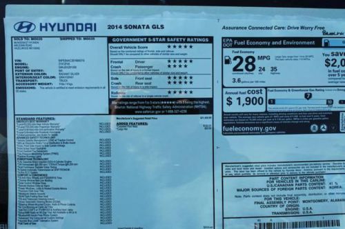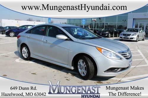 Sonata GLS, 4D Sedan, 4-Cylinder, 6-Speed Automatic with Shiftronic, FWD, Radiant Silver Metallic, and Gry Premium Cloth. Drive this home today! Tired of the same tedious drive? Well change up things with this outstanding 2014 Hyundai Sonata. This Sonata's engine never skips a beat. It's nice being able to slip that key into the ignition and not having to cross your fingers every time. Experience the Mungenast Difference! Visit us at mungenasthyundai.com. Mungenast Hyundai in Hazelwood just off of North Lindbergh and I-270 at 649 Dunn Rd, Hazelwood, MO 63042 888-212-1161 St Louis's Low-Priced Volume Hyundai Dealer! Remember, Hyundai makes the car, Mungenast makes the difference!Prices do not include additional fees and costs of closing, including government fees and taxes, any finance charges, any dealer fees, any emissions testing fees or other fees. All prices, specifications and availability subject to change without notice. Contact dealer for most current information. Advertised price includes all available factory and dealership rebates and discounts. See Mungenast Hyundai for complete details. This offer includes all rebates and dealer cash back to the dealer. Includes the $2000 HMF Bonus cash so this offer in not available with 0% financing. Includes Valued Owner Rebate of $500 and Military Rebate of $500. See a Mungenast Sales Associate for complete details and requirements for rebates. All Dealer Installed Accessories are extra. Come Experience the Mungenast Difference at Mungenast Hyundai. St Louis' Low Price Volume Hyundai Dealership. View the new prices at MungenastHyundai.com At 270 and N. Lindberg on Dunn Rd in Hazelwood, MO. Remember Hyundai Makes the Car, Mungenast Makes the Difference! 888-212-1161