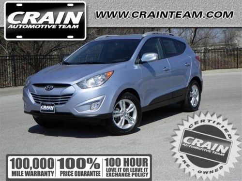 Thank you for your interest in one of Crain Hyundai of Bentonville's online offerings. Please continue for more information regarding this 2013 Hyundai Tucson GLS with 21,842 miles. 888-292-2234. This Tucson GLS defines excellence in an SUV. It has the convenience of limitless boundaries paired with city sophistication. In addition to unbelievable options, this vehicle comes equipped with a factory warranty. More information about the 2013 Hyundai Tucson: The Tucson has a lot going for it when matched up against the competition. With either available engine, the Tucson has some of the highest combined and highway fuel economy ratings in its class. The Tucson has a longer wheelbase than its rivals yet has one of the shortest turning diameters, which keeps it settled and stable on the open road yet also maneuverable in tight spaces. Hyundai also notes that there is more interior space than in some vehicles a class larger and rear-seat legroom is class-leading. This model sets itself apart with responsive powertrains, generous standard features, safety features, rear passenger space, Class-leading fuel efficiency, and smooth ride Every new and pre-owned vehicle is backed by the Crain Commitment, including our 100% low price guarantee, a 100 hour love it or leave it exchange policy, and a 100 year 100,000 mile warranty. The Crain Team's Got 'Em! Give us a call at Crain Hyundai of Bentonville 888-292-2234. Combined Crain Hyundai's sales department has over 100 years of experience and dedication in taking care of our customers before and after the sale. We'll do our best to get you into the vehicle you have always wanted, and we strive to make buying or leasing a new vehicle a pleasant and rewarding experience.... That new Hyundai is waiting for you!