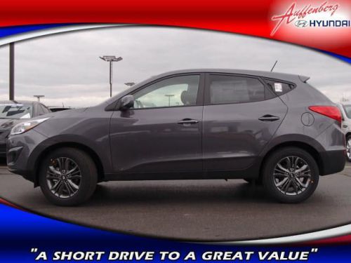 4-Wheel Disc Brakes w/ABS, ABS brakes, Alloy wheels, Body-Color Heated Manual Folding Power Mirrors, Electronic Stability Control, Electronic Stability Control w/Traction Control System, EZ Lane Change Assist, Front dual zone A/C, Heated door mirrors, Heated Front Bucket Seats, Heated front seats, Illuminated entry, Leather Seat Trim, Low tire pressure warning, Remote keyless entry, Remote Keyless Entry System w/Alarm, Tire Pressure Monitoring System, and Traction control. When was the last time you smiled as you turned the ignition key? Feel it again with this good-looking 2013 Hyundai Tucson. Having had only one previous owner means that this wonderful Tucson is sure to be a favorite among our more educated buyers. At Auffenberg Hyundai, every pre-owned vehicle comes with at least a 12 month/12,000 mile powertrain warranty! See dealer for details.
