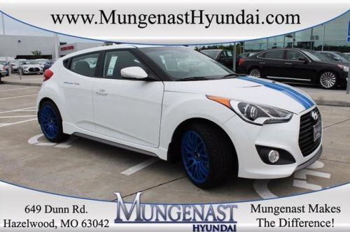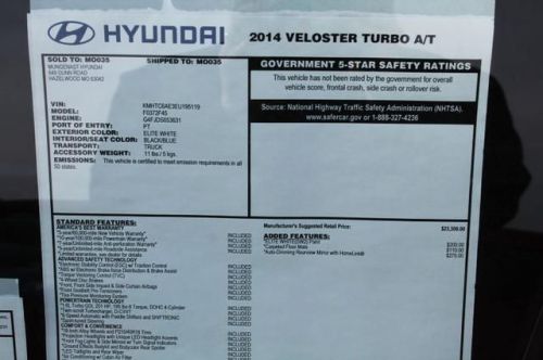 Veloster Turbo w/Blue, 3D Hatchback, 1.6L I4 DGI DOHC 16V Turbocharged, 6-Speed Automatic with Shiftronic, FWD, Elite White Pearl, and Blue Leather. This stunning-looking 2014 Hyundai Veloster is the car that you have been trying to find. Some say you can't judge a book by its cover, but maybe you can by its color! The paint on this Veloster speaks volumes about its personality. Experience the Mungenast Difference! Visit us at mungenasthyundai.com. Mungenast Hyundai in Hazelwood just off of North Lindbergh and I-270 at 649 Dunn Rd, Hazelwood, MO 63042 888-212-1161 St Louis's Low-Priced Volume Hyundai Dealer! Remember, Hyundai makes the car, Mungenast makes the difference!Prices do not include additional fees and costs of closing, including government fees and taxes, any finance charges, any dealer fees, any emissions testing fees or other fees. All prices, specifications and availability subject to change without notice. Contact dealer for most current information. Advertised price includes all available factory and dealership rebates and discounts. See Mungenast Hyundai for complete details. This offer includes all rebates and dealer cash back to the dealer. Includes the $2000 HMF Bonus cash so this offer in not available with 0% financing. Includes Valued Owner Rebate of $500 and Military Rebate of $500. See a Mungenast Sales Associate for complete details and requirements for rebates. All Dealer Installed Accessories are extra. Come Experience the Mungenast Difference at Mungenast Hyundai. St Louis' Low Price Volume Hyundai Dealership. View the new prices at MungenastHyundai.com At 270 and N. Lindberg on Dunn Rd in Hazelwood, MO. Remember Hyundai Makes the Car, Mungenast Makes the Difference! 888-212-1161