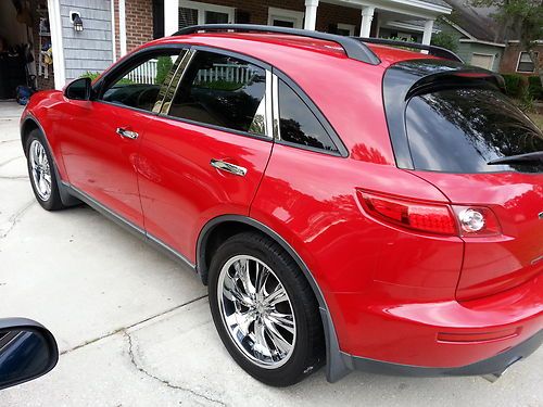 Great condition RARE RED FX 35. 20 inch chrome rims and black leather interior. Car has two tears on the driver seat from normal wear and tear. Has only 97,500 miles on it. Clear car fax you will not be disappointed!!