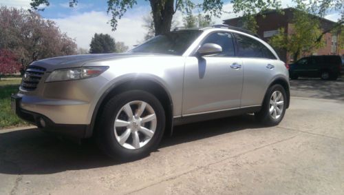 Total recent maintenance receipts total nearly $2,800. Which will save you some major financial headaches you may get from similar FX35's you may find on here. We have enjoyed this vehicle like none we've owned before. It easily handles city/highway & mountain driving. The engine sounds amazing (same engine as the 350z) and rides so smooth. It doesn't feel like driving an SUV at all. The best vehicle I can honestly say I've owned. We think you will agree. Not only is this FX equipped with the Touring Package, it also includes the towing package from Infiniti. This makes it super easy to throw on a bike rack, cargo rack, jet ski, boat, trailer... whatever and GO! We use it all the time and the FX has no problems getting us high up into the Rockies. *Our vehicle was originally owned as a company vehicle which saw extensive highway mileage and regular maintenance. Here is a video of our (soon to be your) FX. It runs super smooth, quiet and strong. The air quickly blows HOT at 90° when you want and ICE COLD when you need it. General Description The FX is powered by a 3.5 liter V6, which generates 280 horsepower and 270 pound-feet of torque. The V6 is paired with a five-speed automatic transmission. This small SUV will tow 3500 pounds, and fuel economy is estimated at 17/23 mpg. An all-wheel drive variation is available, and the two-wheel drive FX is RWD. The FX has only one well-equipped trim level. Luxury and convenience features include multi-zone automatic climate control, full power accessories, a CD changer, a power driver and front passenger seat, cruise control, keyless entry, and alloy and leather interior trim. Standard safety items include traction control, stability control, xenon headlamps, front side airbags, and front and rear head airbags. Owners have praised for the FX 35 for the generous selection of options. Favorite features include aggressive styling, sports sedan-like handling, and the powerful Bose audio system. Touring Package - $2,900