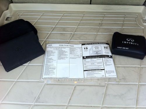 Safety Features: Lower Anchors & Tethers for CHildren (LATCH), Tire Pressure Monitoring System, Remote Keyless Entry, Vehicle Security System, Infiniti Vehicle Immobilizer System, First Aid Kit, Anti-Lock Brakes, Driver Airbag, Passenger Airbag, Side Airbags