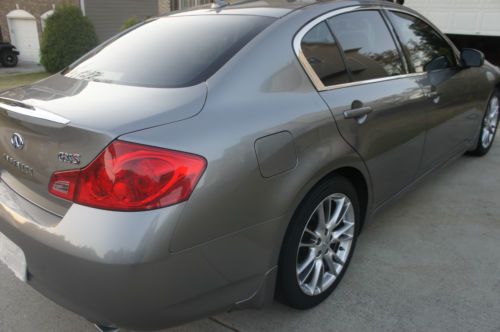 Vehicle Overview Don't miss your opportunity to have a great car! 2007 Infinity G35S (4-Door Sport Sedan) with just a little over 115,000 miles on it. This car runs like a champion with smooth transmission and plenty of power. Premium package is included with all leather seating, heated front seats, sunroof, Bose premium sound system, navigation, 9.5GB hard drive music box, 18" sport wheels, xenon headlights, and more! Rearview mirror even has an automatic dimmer. Most miles are highway miles. Car has been garaged when not driven and well maintained. Non-smoking owner. Wheel alignments and oil changes every 3,500 miles like clockwork. Back tires are worn and will likely need to be replaced. Replaced front brake pads and battery last year. Passed emissions very easily. Clean title! Kept very clean. Original mats included. This car will be a great deal for a very lucky buyer!!! Mechanical: