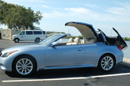 ABSOLUTELY BEAUTIFUL 2012 pacific sky blue convertible! This car has been babied from the moment I drove it off the lot! Still under factory warranty for another 3 years, and has interior/exterior protection coverage for another 6 years. All maintenance performed at Infinity dealership. Floor mats have been gently used and look new. Additional rubberized mats included with purchase of car. This gorgeous car has all the bells, whistles, and speed you could ask for!