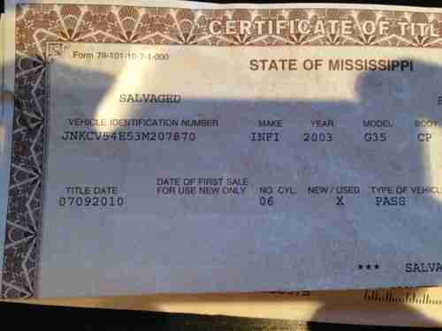 Up for auction is my 2003 G35 Infitini, I acquired it about a year ago with around 92k miles, the person I bought it from obtained it from an insurance auction, the car was repaired by a professional shop as you can see in the pictures, the paint looks brand new and the rims/tires are in great condition, the car in general is in good shape, I have not had any problems at all and it has been my daily driver for all this time, runs very strong and shifts just as it should, when I bought it I had to replace the center console as the stereo and ac were not functioning, I learned back then that this is a common problem of these models, I bought the oem japanese kit (not the cheaper version) and installed a touch screen kenwood stereo (those two alone were over $1100, I had the extra button soldered so the car still has the dual climate feature, a lot of them lose it when this is not replaced professionally), I replaced the driver's window motor, the left front bearing (timken) and did a general tune up of the car, ever since all I've had to have done is the regular oil changes as scheduled, have NOT had any problems at all; please do the proper research on how to title this car to your name as it holds an Mississippi Salvage title, the one issue I had with the previous seller is that the air bag light is on, according to him the bags were not deployed and the module was wrongfully connected when they had tried to replace the stereo ac unit before, when I received the car I fixed all that was needed except for that light, it looks to me that all the airbags are there but please feel free to stop by and inspect the car or have some one come take a look, I don't want to make any misrepresentations and I am describing the vehicle to the best of my knowledge, as mentioned, it has been my daily driver for about a year; windows, ac, stereo, sunroof, switches are all working, as you can notice in the picture the driver's seat has the classic rip in the bottom created by the plastic base, it's a common issue of these models, the car also has an aftermarket air filter, if you noticed in the pictures there is tape around the connector, that has been working just fine; there is a scratch on the trunk lid (shown in one of the pics) and some in the front bumper, but they are minimal (smaller ones from normal usage), all of the pictures are from a couple of weeks ago, except the last one where the hood is open to show the engine, if noticed I had to install the front plate (recently) as I just got a second ticket for not having it (per city requirement), happy bidding, email me with any questions, this is a NO RESERVE auction, please make sure you have your finances ready to pay in full within 72 hours, $500.00 non refundable deposit is due within 24hrs via paypal and the rest via wire within the next 48hrs, the car will be re listed and negative feedback will be left if these conditions are not met; shipping has to be arranged by the buyer, I have a second vehicle but still have to move the car around while the auction ends, I don't expect for the miles to be over more than 100 than the current disclosed, happy bidding!