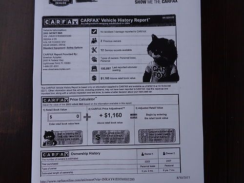 I am the original lessee from Infiniti Oct 13, 2003 and I purchased at the end of the 39 month lease from Infiniti. My car has been serviced regularly and all records are avaialble.