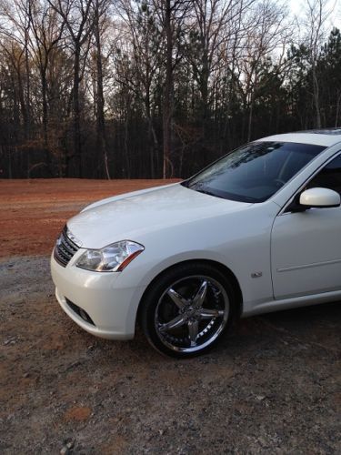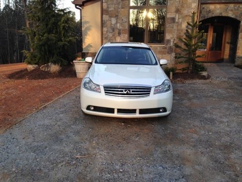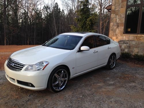 We are selling our baby. A premium 2006 white M45 with black interior (not often found). Second owner who purchased the vehicle with 17,000 when it was only 9 months old. The car came with 20" Foose wheels installed at the dealership in Arizona. This vehicle has every option but AWD: premium BOSE stereo system with 6 disc CD player, DVD player (with wireless headphones), and navigation. Radar assist cruise control, lane departure warning and rear backup camera. Front seats are heated and cooled with dual climate control. Rear seats are heated, power recline and power rear sunshade. Rear seat center console has controls for temperature and audio system. This car is driven highway miles and has been meticulously serviced. Don't let the mileage fool you, this car can be driven anywhere and needs nothing. |