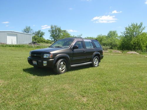 Up for sale 1998 Infinti QX4. Nice body needs paint. Engine will start and run. Catalytic converter plugged and fried oxygen sensors. Car will need hauled, this car will not drive home. Transmision shifts fine and engine runs with no knocks. I do not have time to mess with it and want it gone no reserve sold as is. Buy it fix it drive it sell it will be good car for cheap.