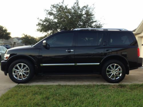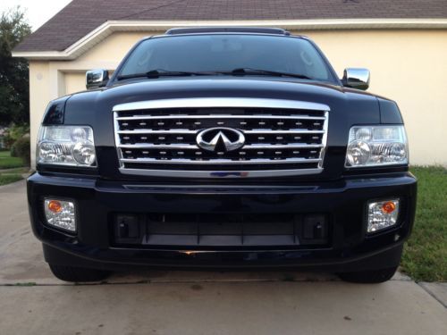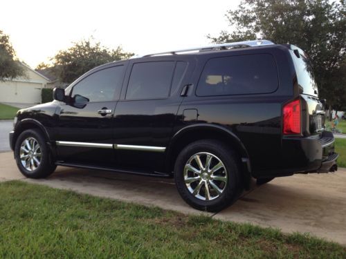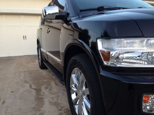 For sale 2010 Infiniti QX56 2WD Black/Black. It is in excellent condition, and it was washed every week, waxed every 2-3 months. The vehicle does not have any scratches or dents anywhere. Always used premium fuel, and only used Mobile One full synthetic oil every 5,000 miles (just serviced). It has almost every option you can think of like Navigation with backup camera, 20" factory wheels with 70% tire tread left, heated seats, heated steering wheel, bucket seats in the middle, BOSE audio system, sunroof, running boards, towing package (never towed anything), smart key, HID lights, DVD system for the back passengers, etc. I am the 2nd owner, and it has never been in any type of accident or any paint work. Best of all, it still has bumper to bumper factory warranty so that you do not have to worry about anything. Just got a new job which requires extensive traveling so I will be buying something more economical. Clean and clear title in hand. NADA book is $36,375. Buy it now is $33,000.