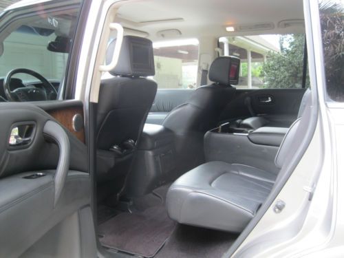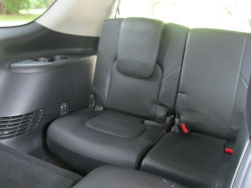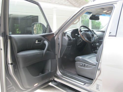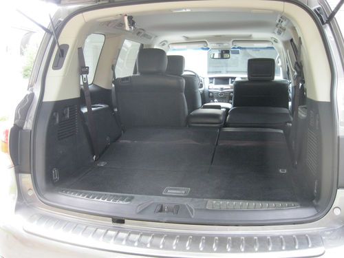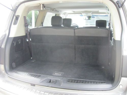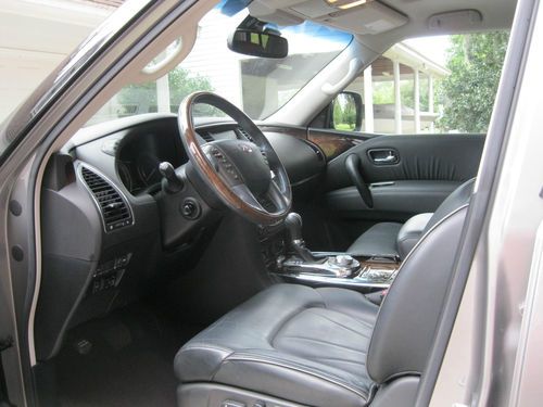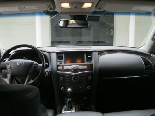 4WD. DELUXE TOURING PACKAGE, TECHNOLOGY PACKAGE, THEATER PACKAGE, ROOF RAILS, TOW PACKAGE, TOW AND SNOW MODES. Platinum Graphite Exterior with Graphite Interior, Tuscan Burl trim. One owner, garage kept. CALL FOR MORE PHOTOS OR INFORMATION. 803-600-0842 Second row captain chairs, heated steering wheel with multifunction controls, XM satellite radio, Bluetooth streaming audio, Bose Premium audio system, Running Boards, power rear liftgate, Upgraded Deluxe Touring Package: 22" 9 spoke forged alum. allow wheels Hydraulic Body Motion Control system Climate controlled Front Seats, Heated Second Row Remote tip up second row seats Semi-Aniline leather seating Mocha Burl trim Advanced Climate Control system Headlight Washers Technology Package: Intelligent Cruise Control Blind Spot Warning Lane Departure Warning Distance Control Assist Intelligent Brake Assist with forward collision warning Adaptive front lighting system with auto leveling headlights. Theater Package: Dual 7" color monitors with wireless headphones. 120V power outlet. USB connection port for IPod Interface, Streaming Audio via Bluetooth, Infiniti Hard Drive Navigation with 8 inch color touch screen display, XM NavTraffic and NavWeather, Zagat Survey Restaurant Guide, Bluetooth Hands Free Phone System, Infiniti Voice Recognition for Audio, nav, and vehicle info. Around View Monitor with front and rear sonar system, Tri-Zone Auto Termperature Control, Intelligent Key and Push button Ignition. The mileage on this vechicle is mostly highway miles. I used this car to travel around the state between my offices. There was one rear fender bender in the parking lot of KMart. There was minor fender damage. The insurance company replaced the fender as it was a new car. The car is in very good condition. I am selling because my kids are now driving and I don't need the large car anymore. I bought a smaller Sport SUV and this one is ready to go to a good home. All Maintenance has been done as scheduled by the local dealer. |