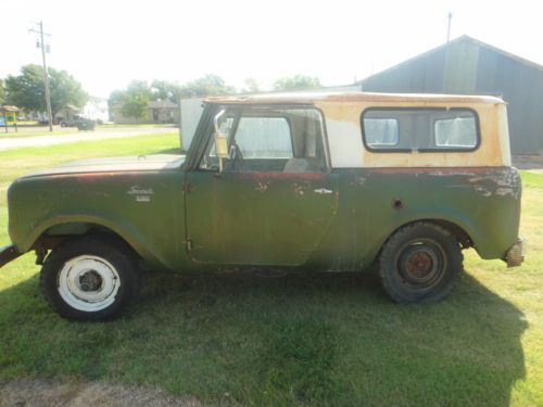 I am the second owner of this truck and originally purchased it for the seat and other parts, but it is too complete, and I couldn't tear it up. I have the title in hand. The vehicle has the usual rust for a scout; rockers, lower front and rear quarters, bed, end caps, tailgate and floorpans. There are many manufacturers that make patch panels for these areas. The motor is free and is said to have run up until it was parked. It is 4 wheel drive and has Dana 27 front and rear axles with a Dana T-18 transmission and Dana T-20 Transfer case with twin stick. I have replacement panels for the front passenger quarter and hood as well as other panels if the buyer is interested. I also have a International V8 with 727 Torque Flight automatic transmission and I believe it is a Dana 300 Transfer Case that are available for sale but not included in the auction.