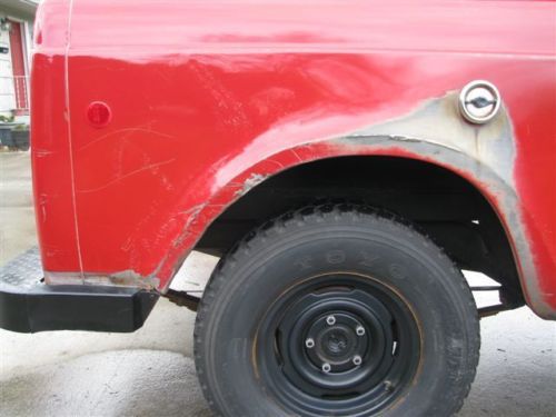 This is a nice unmolested Scout with a 304 V8, and a rare option automatic transmission. This Scout has lived all its life in Eastern Washington so the rust is very minimal. You are looking at all original red paint that has been buffed out and waxed. The drive train is in great shape and runs and drives great! Trans engages right away and shifts positively . The engine runs smooth and does not smoke at all. All gauges work except the fuel gauge. Vacuum wipers need serviced or replaced to electric. The heater will cook you out of the cab so its good to go for those cold days. Recent work done: Brake work with new drums, rebuilt carb, drivers side fuel tank boiled out and sealed, new driver and passenger seats, tune up, and studded traction tires installed. Options for this Scout are 304 V8, auto trans, 4WD, and rear power locking dif. Email if you have any questions before bidding, thanks. Buyer to arrange shipping, payment due 48 hours after end of auction via bank transfer. Truck must be picked up 7 days after end of auction unless prior arrangements are made. |