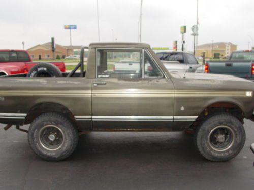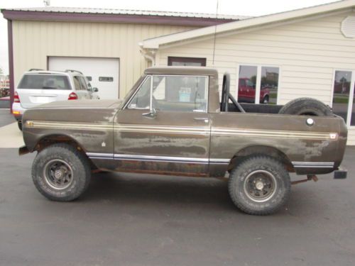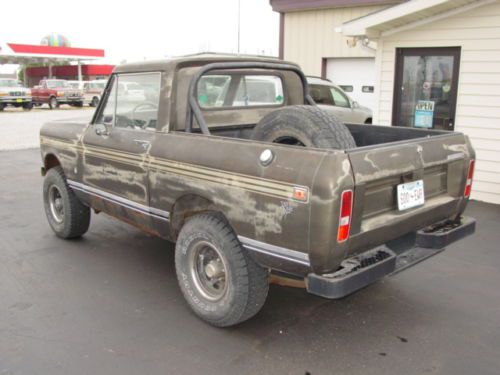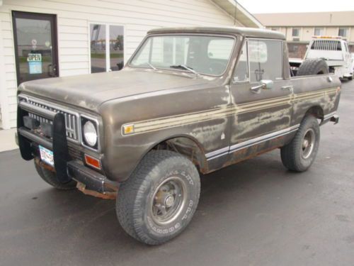 Up for bids is a RARE 1975 International Scout XLC Hard Top pickup. Its powered by a 345 V8 engine, 4 speed manual trans., Power steering, Power brakes. 4x4, Lockout hubs, Lift kit, 31x10.50 tires, Sprayin bed liner, Rollbar, Dual exhaust, Tilt wheel, Spare tire with mount. Rare Scout that's in good condition for its age. The only major rust is in the rockers which I have new replacement rockers that go to the new owner. Runs & drives great, has crack in windshield but I have a good used glass for it. Was in long time storage for over 7 years and spent most its life in Colorado. I was told there were only a few hundred of these made. If anyone knows the actual production numbers on these XLC pickups let me know so I can post them. Call Mike at 402-362-7938 with any questions you might have. We are a small town dealer since 1956 so bid with confidence!!!! Thanks for looking & HAPPY BIDDING!!!!