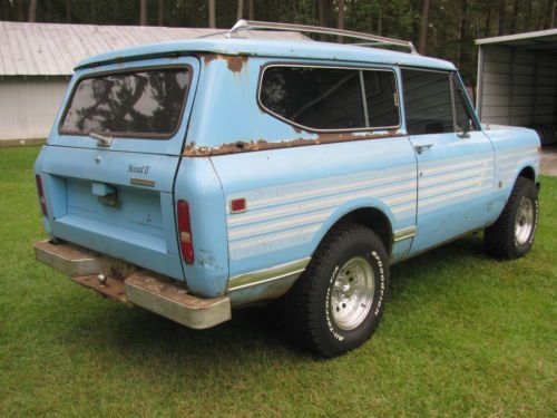 1979 INTENATIONAL SCOUT 4X4 AUTOMATIC 304 ENGINE 73551 MILEAGE RUNS GOOD, NEW EXHAUST, NEW TIRES AND WHEELS, NEW BRAKES AND ROTORS, NEW SPRING BUSHINGS AND SHOCKS, NEW 1000 AMP BATTERY, NEWLY TINTED WINDOWS, REBUILT CARB, NEW PLASTIC GAS TANK, ORIGNAL SPARE TIRE AND JACK, A/C BUT NOT WORKING, VEHICLE HAS RUST IN ALL THE NORMAL PLACES AND HAS A NENT ON LEFT REAR REMOVEABLE TOP, FOR MORE INFO CALL 843-632-0904
