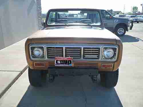 Also comes with two extra glass frames for the hardtop, recently rubberized black paint was used over the rusted floor panels (still noticeable for repairing) but overall looks great (not seen in pictures), hazard lights work, speedometer works, odometer works, the oil pressure gauge has stopped working along with the temperature gauge, new wiper blades installed, break lights work, low/high beams work, 4WD high/low work great! This Scout is a tank and will crawl and climb anywhere I have taken it! It has been inspected and the major issues as noted above are all that will need to be fixed if you really want it done, however they aren't huge issues and I would keep driving it the way it sits for years! The paint is great except for the hood which is chipping and a few dents on the body and a few scratches. Tires have a quarter of a nickel of tread left ( depending on how much it is driven until needing replacing ). Please contact me for any other questions or concerns, I am being as honest as I can be about my rig that I love so much, I want to find it a good home.