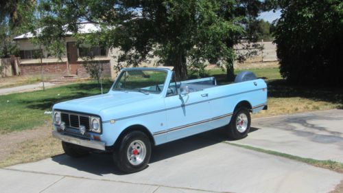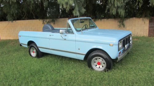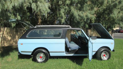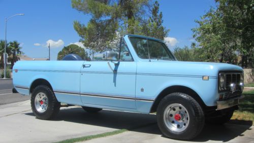 1976 Scout it has a 345 V8 dual exhaust and a 727 Torqueflite transmission with Dana 44 axles with 307 gear ratio. looks and sounds cool. Its got power steering, Power front disk brakes, Tilt sterring wheel. New AC. CD player with MP3 connection. This truck was never in a wreck. The frame was never torched or altered in any way. Floor pans are very strong and original. No rust under the under carriage. Differential tags are still there. they aren't rusted off, and that's rare in itself. Engine like i said, Doesn't knock smoke leak or make any weird noises. This truck runs and drives very strong as you can see in the video. Paint and seats were re-done recently. The original window panels on the inside were old and brittle, they were replaced with 2 new wood panels. As you can see in the pictures they look clean. But the rest of the interior is original it was given some freshening up, or refurbishment if you will. It's got all it's original body mouldings, To me that's amazing that they lasted this long on a 4x4 vehicle. To me that evidence of good ownership. It's got new spark plugs, new wires, new oil change. new transmission service. brakes are good. Tires are good. Shocks are good. It's got a good spare tire with all it's hardware. Front end is good it doesn't pull to the left or right when you come to a stop. All the lights work. All the glass is good.