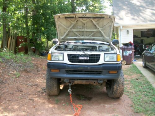 Here is a 1997 Isuzu Rodeo 4x4. It has a 172708 miles on it. It has been lift, 3 inch body lift and a 3 inch suspension lift. Has superwinch locking front hubs, cold air intake, electric fan, crager wheels and 33x12.5x15 tires. The motor and drive train work good, small tick on the motor, proably valves need adjusting. 4 wheel drive works good. It has dual straight pipes on it, no mufflers, but the exhaust will need to be fixed, it is starting to fall. It has a small antifreeze leak coming from a rubber hose from the radiator. The interior has got wet and has a mildew smell. I am selling this as a parts vehicle only. It has a clear title and passed emissions 2 years ago before it was parked. It will need to be towed. This is for local pick up only as is where is. If you have any questions i will do my best to answer them. Thank you for looking.