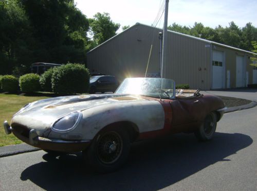 Just in this 1962 XKE Series I, 3.8 liter Roadster. Obviously it is being sold for restoration. This is a flat floor car and is pretty much complete. It has the very early cage on the rear suspension. The car was a stalled restoration and has been sitting for some time. The engine turns freely and the bonnet is in real nice shape. The car will need floors, inner and outer sills. The boot is in fair condition. The car did not have a commission plate when we received it. The chassis number is - 876659 and the engine number is R5578-9. The seats are all there, although covered in velour. The gauges are all in the car and the soft top frame is on the car. The car steers and rolls so it can be transported fairly easily. We ship worldwide and can assist a buyer with finding a shipping company. Transport to the New Jersey port is $400. If you have any questions please email or call Dan at - 001-781-630-0185 or Ray at - 001-617-838-3728.