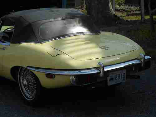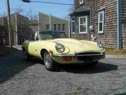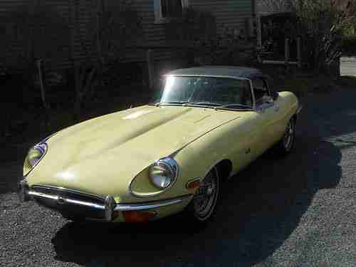 1974 xke convertible, primrose yellow, black interior, 5 speed trans, a/c