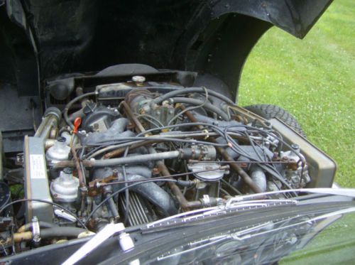 I purchased this car for restoration because it has the four most desirable options (In my opinion) that the Series III cars ever came with, #1) 4 speed Manual Transmission, #2) Wire Wheels, #3) Air Conditioning, #4) Biscuit Interior, and chrome blade bumpers. This car needs a full restoration, there is some rust in the floors , though much less than you would expect. The interior and exterior sills on the drivers side are sound, as is the floor and tunnel. The front bulk head where the Power brake booster bolts needs to be replaced, as does the rear (last 7" or 8" of the drivers side floor. This rust is confined to the place where the Left Radius arm bolts to the floor. On the passengers side, the first 8" to 9" of the outer sill (where the battery sits) needs attention as does the battery tray as well as the last 3" or 4" where the battery bulk head welds to the front of the Passengers side floor. The other minor areas of rust are 6" or 7" of the lips that hold the rubber gaskets that seal the hood to the top of the tub and the portal where the rear trunk door closes. Photos of these areas are available on request. . The motor needs to be cleaned and perhaps refreshed (I have not started it nor ever heard it run) but it does spin freely, and might be able to run with some attention. The car has great tires, suspension , wires, glass and chrome (With the exception of the front bumper blades), and the exhaust system appears to be in good re-usable condition. There does not appear to be any previous damage repairs, and all in all the required work necessary to put the car back on the road should pretty straightforward! With the car I am including a number of parts that I have purchased for the restoration of the car. The most exciting of these is a full custom Carburetor conversion set up that changes the old Stromberg carburetors to a brand new matched set of 2" SU's and all the required linkages and fittings! This conversion is custom assembled in Germany and allows the 5.3L V 12 to breath deeply. producing better fuel economy, and lots more Horse power and torque! The kit alone is worth over $2,000.00. Please feel free to ask any questions. I am also happy to provide additional photographs upon request. |