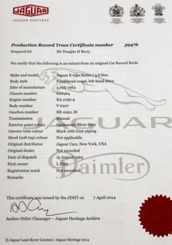 1963 Jaguar E-Type Coupe with 100% factory metal and arrow-straight original subframes; nice body gaps; rare opalescent silver grey/ black color combination. Undercarriage reveals all original factory spot welds; no metal replacements ever. Bonnet and trunk floor in solid original condition. Stored and not driven for decades. Engine runs smoothly on all cylinders, all other mechanical systems must be checked prior to driving. We are a licensed California dealer: California retail buyers will be responsible for tax and license fees. Overseas buyers are welcome: We work closely with a local shipper in Hayward, California, who offers competitive rates. Please complete any inspections prior to bidding. Thanks for looking! Please email any questions, and see a slideshow of 130 detailed and downloadable pictures below: