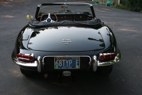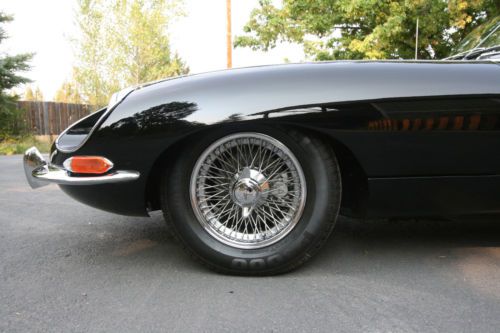 I am selling my cherished Jaguar E-Type after 7 years of summer only driving. The Jag was restored between 1998 - 2000 and in again 2008. It has been driven only in the summer, never in the rain. The body was fully restored using Martin Robey panels. The interior was completely replaced with a complete interior kit from Bartlet of Ohio. The engine received a top-end rebuild. Engine is fed by 3 SU's fully rebuilt by Apple Hydraulics. All bright work has either been replaced or re-chromed. The Jag was restored to originally specifications with the exception of the following modifications: gear reduction starter, new Cool Cat fans, contemporary sound, Mallory electronic ignition and spin-off oil filter. This car is an above average driver and will be a real joy to the new owner as it has been for me. The Jag has taken first place in multiple car shows. During the 2008 work, the clutch was replaced, the hand brake assembly was completely rebuilt and new brakes were installed all around. Also in 2008 the original 5" chrome wires were in poor shape and were replaced by 6" Hendrix wires with new chrome knock-offs and new Pirelli tires, all body panels were pulled and repainted by Autowerks; the switches and gauges were replaced or made operable, all seals, hoses, clamps, rubber etc. were replaced. Car maintains perfect factory oil pressure, water temperature and idle RPM. Engine block stamp # is 7R108629, body picture frame # is 1E17618. I have over $40,000 in repair/rebuild invoices from 2008-2009. Feel free to email or call me with questions peter@lowescp.com (541)788-2444.