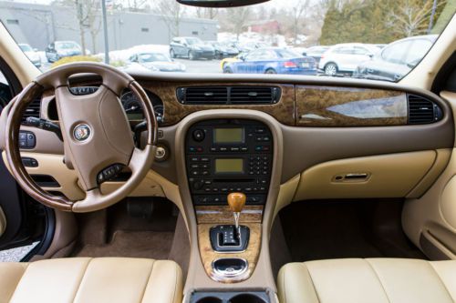Clean, low-mileage, beautiful Jaguar S. Comes with the original window sticker. 235 HP 3.0-liter V6 engine, 6-speed automatic transmisison, dynamic stability control, electric parking brake, anti-thft, dual aotu climate control, leather-trimmed seats, dual-tone beige interior, Madrona wood trim, sunroof/moonroof, heated power front seats with power lumbar support, fold-down rear seat, 140W stereo/CD, auto-dim door and interior mirrors, rain-sensing wipers, 3-channel garage door opener, power-adjustable pedals, 2-position memory settings for driver seat, pedals, mirrirs, and steering column. Always garaged. Recent Continental tires and breakpads. Located in Bryn Mawr, PA
