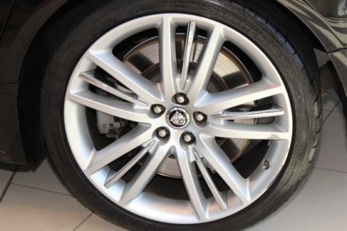 Newly tuned dampers and stiffer spring rates, along with an electronically controlled differential should ensure that the massive power of the engine isn't wasted in transition to the road. Jaguar has also tweaked steering software and hydraulics, with the goal of increased road feel, response and overall feedback. 20-inch signature wheels carry wide Pirelli rubber (265-section up front, 295 in back) to keep the XJR planted.