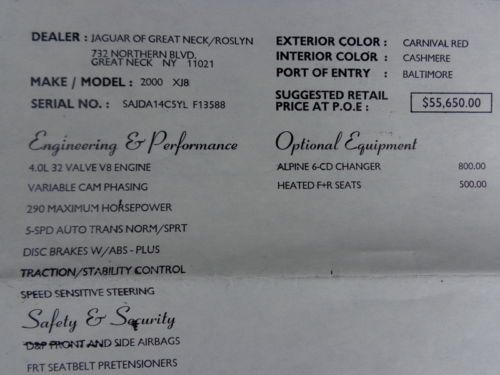 Florida 00 Xj8 Winter Pkg Clean Carfax Cd Changer Sunroof 75k Miles Low Reserve on 2040-cars
