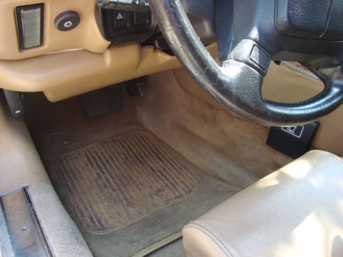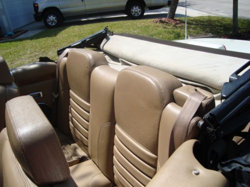 Excellent care, garage kept. She also has the original owner's manual. Interior is in very good condition with no rips, tears or loose stitching. Everything works to our knowledge. Top is in like new condition and functions properly meaning the rear windows go up and down as they should. Wheels are in fair condition, no curb rash. Tires are in good condition also. She runs smooth and quiet.