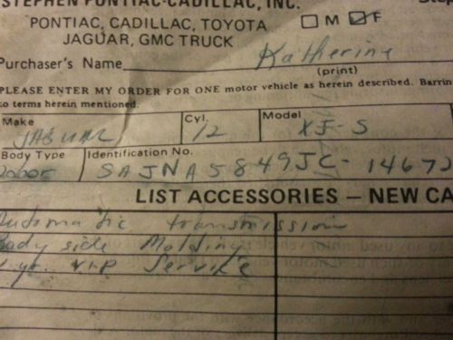 1988 JAGUAR XJS. This is a one owner car (see purchase agreement) with clean CT title. The car was stored for many years indoors. The fuel went bad in storage and car would not start. Took to a Jaguar dealer where it then sat outside for a year before it was worked on. The car shows signs of this weather exposure now. I spent $600 having the car gone through and have the written appraisal of condition from them.They statethat it has good compression and is a good car and they cleaned the plenum. Advised to replace the fuel rail becasue of the bad gas. This car ran great when put away for storage and I am sure it will again. I have found a service that completley rebuilds the Fuel Rails to factory condition for $420. The starter is weak and I am including another used one for replacement. Needs a battery as well. This car is good for parts or restore. Leaving at the dealer for so long was a mistake that caused the car to need more work than when brought in. The roof needs paint. Selling as is for repair or parts. I know this car will run with fuel system clean out. Too good to just sell for scrap so I am listing with no reserve. My loss is someones gain. I dont have time to work on and am losing storage space. It is currently in Newington CT. It will need to be towed or I can arrange delivery for cost of service.