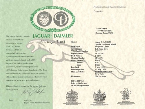 Being Sold with NO RESERVE, Please D O N O T bid if you do not have funds in hand and/or cannot complete the transaction! We welcome and encourage inspections during the listing time frame, additional hi-resolution photos available upon request. 1953 Jaguar XK120 SE Drophead Coupe Chassis No: S677155Engine No: W8443-8S Body No: P1157 Highly desirable LHD US-delivery Special Equipment Model Numbers-Matching as verified by the JDHT Certificate A Genuine Virginia Garage Find Incredibly solid condition and attractive original colors We very often receive request for authentic and solid Jaguar XK 120's, 140's, and 150's. There is a trend of forward thinking investors and collectors looking to acquire original unspoiled cars to use as driving long term investments or to perform show quality restorations that can completely transform a motorcar to blue chip quality. Of course there are also those who love the cars just for what they are and can appreciate the patina of a car like this. The XK120 SE Drophead Coupe presented here offers so many options for the next lucky owner. This original left-hand drive Special Equipment Drophead Coupe was completed on May 8, 1953, and dispatched to the U.S. on May 15, 1953 through Hoffman Motor Car Co. in New York. The DHC was the most luxurious and expensive 120's available for the first time in 1953. Whereas the roadster was a bare bones open car, the drophead coupe featured exterior door handles, retractable glass windows an insulated boot that can lower within seconds and lavish wood throughout the deluxe interior. To enhance the motoring experience - this particular 120 was fitted with the more powerful Special Equipment package. The SE Model (known as XK120M in the States) gave a power boost to 180bhp using high lift camshafts and carburetors. The 120 also features lightweight aluminum hood, doors, and trunk. Wire wheels and fog lights were fitted as standard, as was overdrive. The options and original specifications are verified by the Jaguar Heritage Trust Certificate which is included with the sale. Just discovered residing in a hidden Virginia garage alongside other equally impressive British sports cars, this XK120 DHC benefits from great previous ownership of 25+ years before being parked just over a year ago. It appears to have received a ground-up restoration quite some time ago with strong patina throughout and a beautiful nostalgic appearance in its original factory colors and woodwork. Acquired recently in non-running condition we have turned the engine over and it attempts to start but additional servicing will be required before driving. A service of the brakes and a thorough check over of the mechanicals will be required before driving. With so many other projects in line we are offering S677155 as-is where-is and hope that the next owner enjoys the process of making her road worthy again. It's a wide open book, we welcome and encourage inspections from any interested parties. It is important to note that this car is completely solid and with no corrosion issues. All of the numbers match including the engine block, head, transmission and body. This is an overall fantastic opportunity to acquire a fantastic sport luxury Jaguar XK120 SE Drophead Coupe. Advertised locally for: $76,500.00 More Photos Available at this link: 1953 Jaguar XK120 SE DHC To learn more about this vehicle, please contact our sales department at (281) 497-1000 or sales@driversource.com Selling Made Simple. We buy classic European & American sports cars! One vehicle & entire collections! Finder's fees paid!! Being sold “AS-IS” “WHERE-IS” and with NO WARRANTIES. By bidding, you are committing to purchase this vehicle, and not the option to withdraw. We welcome and encourage inspections during the listing time frame. Please DO NOT BUY if you do not understand the terms - Backing out of the sale after the auction has concluded is unacceptable. We are more than happy to discuss the car and auction with you by telephone - Please contact: Jose Romero or Brandon Mason at (281) 497-1000. We can help arrange shipping worldwide. |