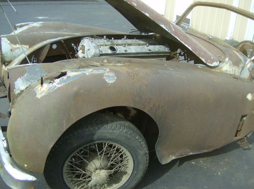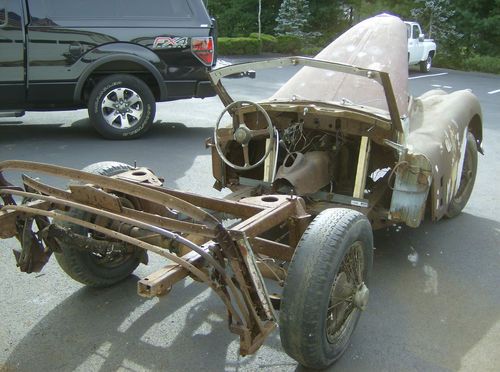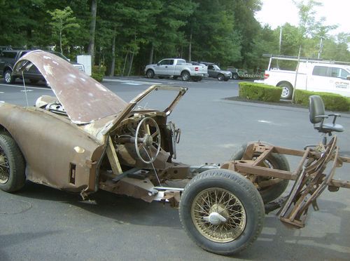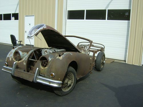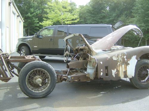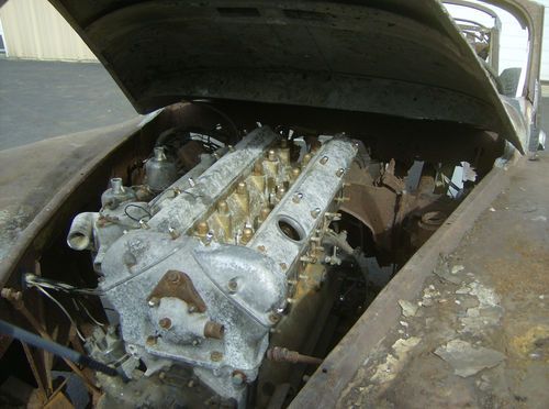 This 1955 XK140 drop head coupe, as you can see has not been kept in a heated garage. There are very few of these cars left that have not been restored. What remains of the car is shown in the photos. This XK140 is a special equipment car as designated by the S in the chassis number -- S817048. The S also indicates that the car was fitted at the factory with a C type head. The car still comes with the hood frame intact, which surprisingly is in good shape. The engine and gearbox presently in the car do not match the commission plate. A donor car would allow this car to be a reality come true. The car does steer and roll, so it can be shipped easily. We can offer assistance with shipping arrangements worldwide. If you have any questions please email or call Ray at 001-617-838-3728 or Dan at 001-781-630-0185.