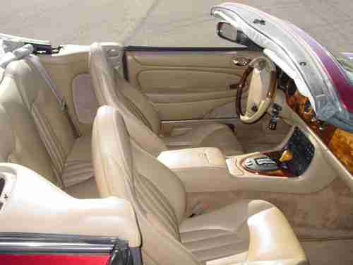 Good used Jaguar XK8 Convertible. Owner is buying a newer one in exactly the same colors. He just wants a newer one. This is a nice car, A few age related defects that you can see in the pictures. It has a small dent on the forward edge of the left rear fender. The paint is not broken but the metal is pushed in a bit. The drivers seat has some early wear on it. The wood is really very good with no defects. Everything seems to work very well. The car drive as it should and it has a clear title and clean smog. The owner has recently put four new tires on it. These are the original equipment and are over $300 each. It has chrome wheels. The fabric of the soft top is in very good condition. The hydraulic pump that runs the top up and down is a little slow, may need some hydraulic fluid. Generally a great looking car at a very good price. Remember when these were $85,000? This one can be bought for under $6,000. Located in Northern California. Call me on 530 306 4648. or e-mail for bigger better pictures.