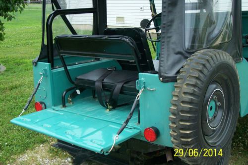 1947 Willys Jeep CJ2A RESTORED. The Previous owner disassembled the body, cleaned and then painted on both sides of the sheetmetal. Motor given complete overhaul. Motor runs smooth, no smoke, no misses. Original Odometer reads 22,522 miles. The Previous Owner installed NEW: Water Pump / Fuel Pump / Shocks / Front Bumper / Heater / Heater and Radiator Hoses / Wheel and Master Cylinders rebuilt / Brakes & Brake Lines / 5 Non Directional Tires / Rebuilt Transmission / Alternator upgrade to 12 Volt / Seat Cushions / Throw-out Bearing / Safety Glass in Windshield / Windshield Wiper Motors & Wipers / Lockout Hubs / Pressure Plate / Clutch / Steering Wheel / Wiring Harness / K-Line Top & Doors / Data Plate for Dashboard. I have had the following NEW parts installed: Carter WO Carburetor / Distributor Cap / Points / Plugs & Plug wires / Coil / Battery / Seat belts / Turn Signals / LED Tail and Stoplight Assembly / Leaf Springs with all parts / Gas Tank / Fuel Sending Unit / Fuel Filter / Steering Shaft with Bearings & Bushing / Sector Shaft / Drag Link Kit / Pittman Arm / Custom made Roll-bar / |
