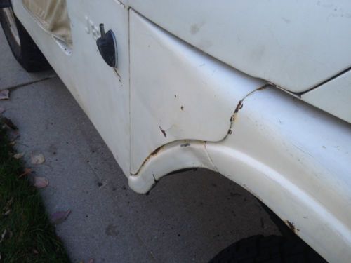 Up for sale is my 1966 Kaiser Jeep CJ5. This has the original Buick Dauntless 225 V6 engine which is pretty cool. It has the standard three speed manual transmission and transfer case. The Jeep is equipped with a vintage 6,000 pound Belleview winch, Warn locking hubs, and roll bars. It has also been upgraded to manual Sagninaw steering. The frame is rock solid and so is the body, except for some rust through in front floors. There are two small areas that I show in the photos which I suspect could be easily reapaired if desired. The engine starts up and runs fine. It has a nice rumble from the V6 and dual exhaust! Dives and shifts fine. The body is pretty straight overall, but does have a few dings and scratches here and there to give it some character. I believe everything works minus the brake lights (not sure why) so that will need to get sorted out. Thanks for looking and please feel free to email me with any questions.