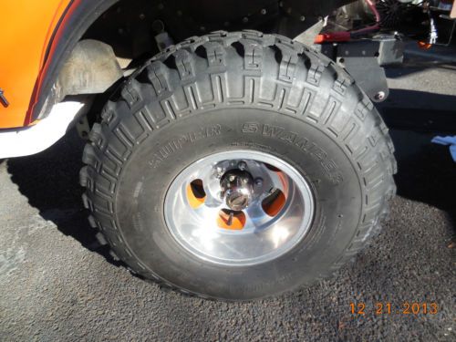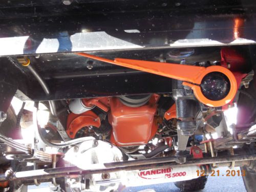 1973 C J 5 Jeep This Jeep is a looker. It gets losts of thumps up and a comments - Nice Jeep!! Engine: AMC 401 only 3,000 miles on it since rebuilt. Built and balanced. Got the good heads with 202 exhaust chevy style rocker and springs (not the bridge style) Eldenbrock intake manifold 670 Holley truck avenger carburetor with high idle cylindroids Aluminum value covers - Offhinhouser Fender well headers K & N air cleaner Distributor- Electrical – after market MSD Plug wire w/value cover wire looms One – wire Delco 100 amp alternator Optimal Aluminum Radiator w/ and fexilite pusher fan and a manual flexilite fan On board air with York air compressor it puts out 9 cfm Drive Train: Front: Model 30 front end with disc brakes 427 gears and Power Tracks Locker Warn Premium Hub Power brakes with disc brakes in front 11 inch drum brakes in rear Rear: Dana 44 with 427 gears with power locker Power Steering the box also has a brace Tranny: Ford T-18 Manual 4 speed with a Center Force clutch and pressure plate Transfer Case Model 300 with twin sticks Currie Shifters Tom Woods Rear Drive-Line with CV joint Rear Track articulation bar Suspension: Front: Spring over 1993 Jeep Wrangler Leaf springs with M.O.R.E Shackle Reverse All urethane bushings and are grease able Rear: Spring over 93 Jeep springs all greasable Shocks: Rancho 9000 air system with dash controller Fuel Tank: Polyauratin 21 gallon with filler on the side like a Jeep Wrangler Bumpers: Front: Custom built with a 9000 xi Warn winch. It holds hi-lift jack, D rings Shackles. Front and rear bumpers are powder coated. Rear: Custom built swing away rear tire carrier with a lock to stay open, shovel holder, CB antanna mount, license plate mount, 2 inch receiver w/ trailer plug in And D rings Frame: The frame has been boxed in places for extra strength and it has been lengthen 4 inchs Tires: 36 x 12.50 x 15 Super Swappers Radials TSL, 80% tread left. They have been sipped for extra traction. Wheels: 15x 10- old style American Racing Slotted Mags. Paint: Outside Concept Paint Safety Orange Very good paint but, has scrapes, chips in it from years of trail use but, still looks great. Lights: Front Headlights Halogen Rear Lights LED Tail lights Interior: Gauges Auto meter (oil, water, temp) Auto meter Tach Heater motor --- higher RPM motor than stock Under passenger seat storage Large fire extinguisher under the driver seat Glove box replaces with a plastic Front floor mats CB Radio- Cobra with external speaker Rear seat Full roll cage Custom Steering wheel New Front seats – fits a big man 6’2” Smytbuilt New Best top Super Top with extra top and drivers door everything are brand new Tilt front end-It is showing some spider cracks in it just from flexing. Top and