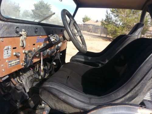 Hello, up for bidding is a '73 CJ-5, here are some specs about the vehicle: Spider gear welded in front Soft locker in the rear 4" super lift springs and lift shackles 33 in 12.5 bfg mud terrain tires 15 gallon aluminum fuel cell in the back, 4" fuel neck BRP bucket seats CD radio 10" Kenwood subwoofer and amp Aluminum 15" x 12" rims Has a bikini top and hard top, and doors 3 speed manual transmission high lift jack mounted on the back No sway bars Light bar on the front It was last registered in 2009 The odometer reads 68741 Passenger has a small tear in it (see pictiure for details) Has few minor dents and dings, starts up and runs well Feel free to contact me with any questions via e-mail, text, or call, my number is 909 231 5556. Thank you for looking |