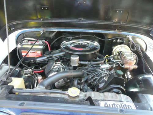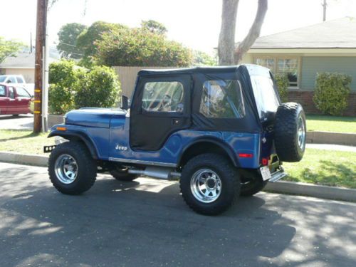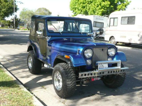 Hello & Thanks for Looking, Up for auction is my personal 1975 Jeep CJ5 V8 Softop. I bought this as a basket-case and have sorted through this truck to make a truly reliable and fun Jeep. I've gone through and replaced almost all of the electrical connectors from the front turn signals to the new LED brake lights and almost all the wiring between.There are no electrical gremlins, and the alternator charges incredibly quickly. I've been using this Jeep as my daily driver for some time, and the farthest I've driven it is 350 miles in one way (8hr trip) . This CJ5 starts the first time, every time. As life would have it, my wife and I are expecting our first child so the Jeep has to go. It's a real shame because I've spent so much time and money to get this Jeep to the way you see it today. The condition report should be read at the bottom for consideration. With a little paint, this could easily be a $20,000 truck, because everything mechanical has pretty much been done. Buyer must co-ordinate shipping if buyer requires freight, but I'm very to work with a shipping company if needed. The Main Features of this Jeep are: Engine -Stock 304 V8 w/2bbl Carb -Engine Runs Very Strong with Almost 40psi Oil Pressure at Startup -All engine wiring sorted out, and everything works and verified -Complete tune-up performed -Clutch operates easily, with easy pedal effort -All vacuum lines verified and replaced as needed -New Battery Ground and Engine Grounds -Prestone 50/50 Coolant replaced -Oil Flushed and Replaced with 5-30 Zinc Fortified Oil -Previous Owner Installed GM High Amp Alternator Exterior -Bestop Black Tigertop Installed (It was 1year old when I bought used) -Bestop Brand New Tigertop Doors Installed -Bestop Locking Door Handles -Olympic Auto Accessories Front Chrome Bumper -Heavy Duty Thick Steel Rear Bumper -2.5" Exhaust with Industrial Stainless Tips (vht coated) -Brand New Stainless Mirrors -Brand New Chrome Hood Catch -Stainless Radiator Bug Catcher -Chrome Plated, Side "Rock Sliders" on Tub -20 Gallon Fuel Tank with Working Fuel Gauge -New Fuel Filler Hoses, the Tank Fills Quick -Easy Opening and Locking Gas Cap -Brand New LED Brake Lights -Great Original Clear Backup Lights -New and Bright Running Lights -Great Condition Stock Fender Flares -Inner Fenders/Tool Compartment/Underbody Rhinolined (older but in great shape) Brakes/Suspension/Wheels -Less than 2,000 Miles on Mickey Thompson 31x10.50R15LT (Baja MTZ over $200 each) -Chrome Rims with Locking Lugnuts -All Front, Rear, Transmission, and Differential Fluid Changed 2 weeks ago -New Master Cylinder/Brake Booster and all hardware installed -Brakes Grab Hard and Can Chirp the Tires Easily -Brake Fluid Flushed and Replaced for all 4 Bleeders -Selectro Brand Locking Hubs on the Front Axle -Previous Owner Installed Saginaw Power Steering Pump -All Zerk Fittings Greased, and Suspension Cleaned/Lubed -2.5" Rough Country Leaf Spring Lift Installed -New NAPA 2.5" Lift Shocks -Previous Owner Installed Rancho Steering Stabilizer (I installed new bushings) Interior -Matched set (Front/Back) of original Low-Back Black Vinyl Sets with Grey Tweed Inset -Chrysler Tilt Steering Column w/Key to Lock Column for Anti-Theft -All Gauges Work and Are Accurate -Premium Grey Carpet Kit Installed with Sound Deadener -Olympic Auto Accessories Stainless Step Guards -Completely Rewired Dash Wiring and New Connectors with Proper Grounds -Hidden Tool Box Storage Area Under Passenger Seat in Great Shape -Locking Tuffy Center Console w/2 keys and Cupholder -Chrome Glove Box with New Plastic Interior -Jensen JHD1510 Sirius/Ipod Ready CD Player -Kicker Impulse Centra-Pod Speakers -Kenwood KAC 6404 AMP -New Antenna Works Great and Receives Even Hard to Tune Stations -Pair of R1693 Rockford Fosgate in Individual Enclosures -VW 3 point Seat Belts for Front (stock in rear) Here's a list of some of the items I installed in the Jeep, majority of the items are less than 6 months old: -Brand New "Jeep Brand" Windshield and Seal (Professional Installed) -Nearly New CJ5 Bestop Tigertop (1 year old when installed) -Brand New Pair of CJ5 Bestop Tigertop Doors 240.74P -New Rough Country 2.5" Lift Springs Front and Rear -New NAPA 2.5" Lift Shocks -New Grant 15" Wood & Stainless Steel Steering Wheel 967 w/Jeep Logo Cap -New Defrost Duct 17907.01 -New Gates 23856 Fresh Air Duct -New Heater Core, Vista Pro 399202 -New LED Dash Lites (5mm Cool White 30,000 mcd) -New LED Turn Signal Indicators BA9S -New 7" Dual Brake Master Cylinder (Corvette Style)MBM MC1321H w/Brake Booster 6M103 -New Omix-ADA Steering Wheel Seal -New 4 Seasons 801709 Heater Core Valve -New Fel-Pro Rubber Valve Cover Gaskets -New 28" Heater Cable Omix-ADA 17905.03 -New 13lb Prestone Radiator Cap RR-29 -New Borg-Warner BWD-S297 Brake Light Switch -New LED Brake/Tailight Housings -New Omix-ADA Power Brake Booster Firewall Seal -New 13319.05 Omix-ADA Temperature Indicator Light -New 13319.02 Omix-ADA Wiper Indicator Light -New 13319.03 Omix-ADA Lights Indicator Light -New Crown Volt-Meter Gauge 8126659 -New Grey Vinyl 4pc Floormats -New Headlight Switch Omix-ADA 17234.03 -New Napa LF-12 Loud Electronic Relay (for the LED Lights) -New Set of Heater Panel Switch Knobs Omix-ADA 13318.05 -New Pair of Amber Front Side Marker Lights Omix-ADA 12401.01 -New Pair of Red Rear Side Marker Lights Omix-ADA 12401.04 -New Omix-ADA Distributor Cap 17244.14 -New Omix-ADA Distributor Rotor 17246.08 -New Windshield Cowl Seal Omix-ADA 12302.02 -New Bestop Windshield Soft Top Channel 51209-01 -New Omix-ADA Black Antenna Kit 17214.02 -New Omix-ADA Dual Black Cup-Holder 12035.5 -New Omix-ADA Emergency Brake Pedal Cover 16751.07 -New Omix-ADA "Master" Tune Kit 17256.30 -New Omix-ADA Fuel Tank Vent Hose 17741.01 -New Hurst Shift Knob w/Correct Pattern -New Omix-ADA Stainless Battery Tray Holdown 11132.03 -New Bestop Rotary Paddle Handle Locking Latch Kit 51252 -New Omix-ADA Rearview Mirror 11020.01 -New Omix-ADA Locking Gas Cap -New Omix-ADA Br