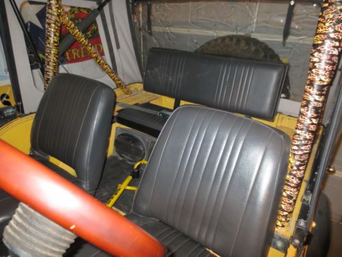 1975 Jeep CJ5...Original 232 engine w/headers and 3 speed manual T-18 tranny. (AMC-designed, 232-cubic-inch, overhead-valve straight-six, with cast-iron block, hydraulic valve lifters and a single-barrel Carter YF-type carburetor). Dana 20 Transfer Case, Dana 30 Front Axle, Dana 44 Rear Axle and T-14 Transmission. Some people say that this is the best engine ever made. I might have to agree with this. Many new parts (fuel tank, water pump, radiator, u-joints, steering knuckle, thermostat, totally re-wired, rebuilt carb., guages, etc...) Older (but still nice) custom paint job, Sitting on 36" tires. CD Stereo with connect ports, remote and Box speakers in rear. Newer "Bestop" soft top and doors and also comes with brand new never used bikini top and plastic molded 1/2 doors. Brand new Battery. Receipts for all work done. Reason why mileage reads 0052 is because all new guages were installed in 2012 and Speedometer/Odometer was also replaced. There was approx. 80,000 miles on old odometer and Only 52 miles added since replacement. It just sits in my garage. I start it up every few days for a minute or two to get the fluids circulating. |