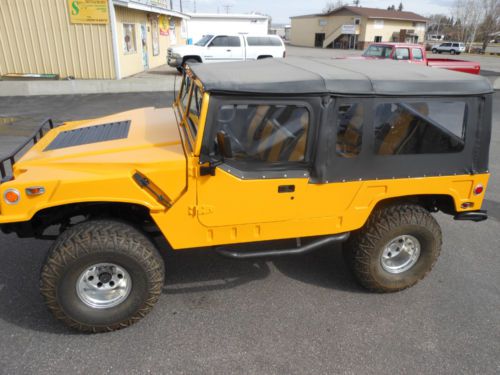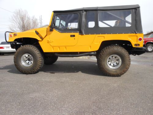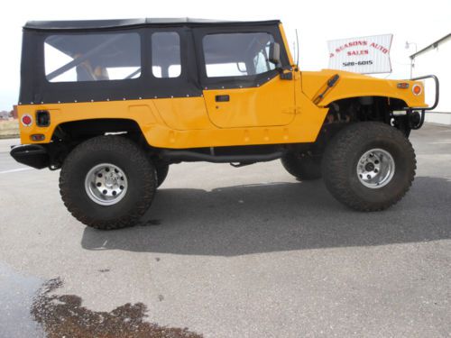 This very unique vehicle was won by myself at a 25th anniversary sale at a manheimmanhiemmanheimmanhiemmanheim auto auction. It was purchased by the sale from a company based in Utah at the time. This is the only won like it in the world,there was roughly 47 built between 1997 and 2000. this rolled out in the year 2000 and I am the only owner. Manhiem paid 25,000.00 thousand back in the year 2000. Since there was very few made they will do nothing but continue to go up in value. Manhiem purchased this on a wholesale bassces at the time. There is so much to talk about this bummer I would never have time to mention all that could be said. Hopefully you can call or E-mail me. It has a 350 fuel injection with a 350 turbo transmission. Everything on this is custom built. Most of the body is fiberglass with the doors and tailgate metal. This is the only one that was built this way!! custom leather interior, seats four adualts up in the front seat. Seats three in the back seat. (about the company that built these) My understanding is GM fileld several law suites against this company. The bummer won every law suite although it continued to get very exspensive to have GM sue them time and time again. This is why they evenutally had to close there doors. These are very rare and very very neat!!! It has been driven very little with only four thousand miles on it in the last fourteen years. If you think a Jeep is neat you haven't seen anything yet. This is three times what a jeep is. There is a few of these scratered out through the united states and some over sea's. It will just be something you'll have to E-mail or call me to get more information. I can be E-mailed at lewisehardt@gmail.com or my phone number is (208) 528-6015 its in Idaho Falls Id and parked in my heated shop. Here's the reality for me . Iv'e gone through a divorce and have no other choice but to sell! I would never have even considered selling this if it wern't for my personal situation! As a resalt I must sell or possible trade for another vehicle? I love this Bummer and you would too. This is an auction and the reserve price will not be giving out. (please do not ask Thank you) Prefred method of payment would be bank wire or possibly a cashier check. Please come over in person so you can see for yourself!! I would require full payment within 48 hours. This vehicle is being offered with no warranty what so ever. (AS IS) I believe no one could be disapointed with this bummer!! Please call!! Thanks for looking!!