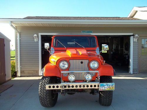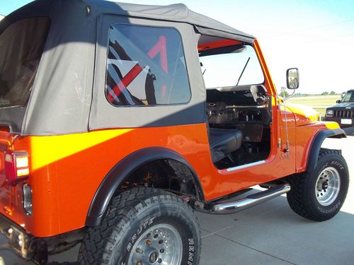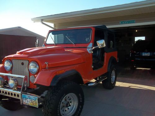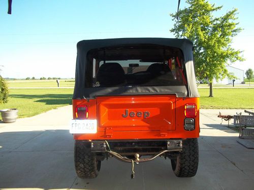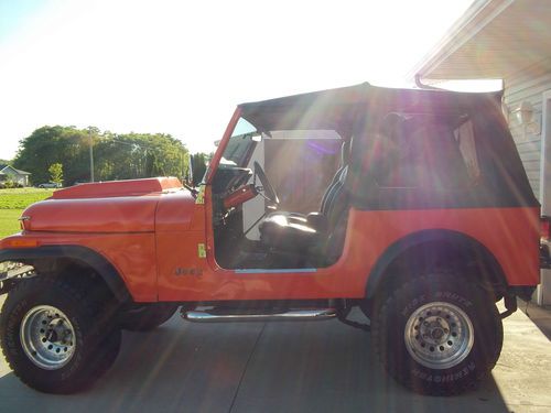 1978 CJ custom fiberglass hood with scope, two new front steel fenders, new carb, new soft top 2 soft doors, new beanie top, hard top unpainted steel doors, new radiator newer tires 31x11x15 clutch has 50 miles on it new front glass new front glass frame and gasket frame has a 4inch lift body has a 3inch lift not installed overall paint job looks good very solid frame been stored in a barn for 14 years Would not be afraid to drive cross country. This isn't my jeep. I'm selling it for my buddy. You contact him at 937-710-5526. This is for local sale also.