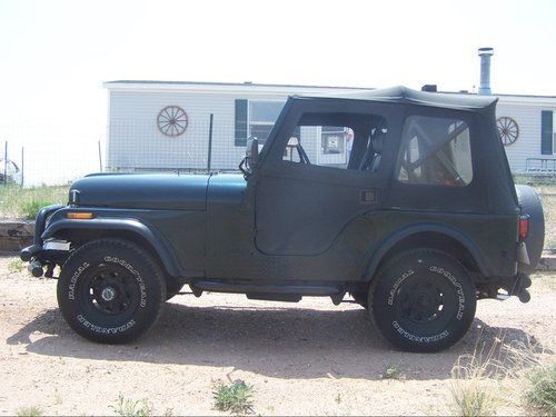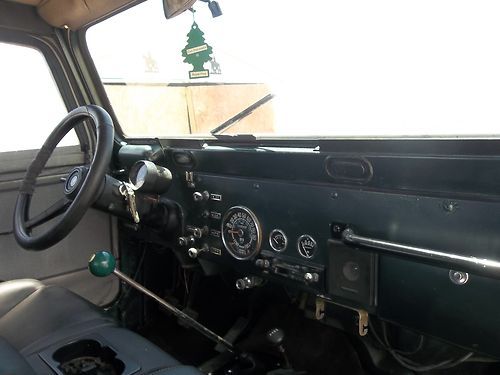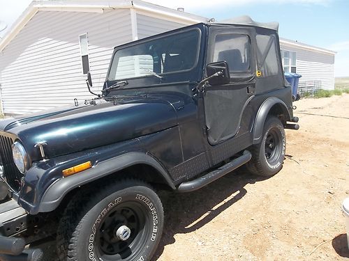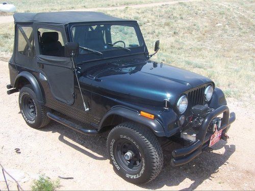 79 cj5 with a older restoration. The front seats and center console are redone in great shape. The jeep was repainted by the first owner a dark green. Paint is in good condition. Jeep has a 3spd trans with new clutch and linkage. The 304 is bad as a rod went through the oil pan. You will have to rebuild the motor or replace it. The motor has a new top end heads, rebuilt carb, cam, lifters, push rods, timing set. Jeep has power steering, brakes front disc and rear drum. Dana 30 front and a model 20 rear. New u joints in drive shafts. Jeep has a 5500 lbs Chicago electric winch, a tow bar and front tube bumper. The tires are a few months old size 235/75/15 on black spoke wheels. The top has been replaced about 2 years ago by previous owner. One small crack in drivers side plastic window. Jeep has carpet from front to rear. There is no rust in the body. Jeep is for sale as is as it does need the bottom end of motor redone or a replaced motor installed.
