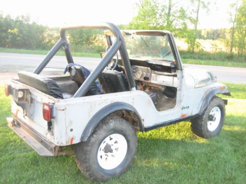 1979 Jeep CJ5 silver anniversary edition. approx. 1000 of these were made. 258 (inline 6 cyl) w\2 bbl carburetor\T150 3 speed manual transmission\dana 20 transfer case\dana30 front\AMC20 rear diff. Factory tach (works) and clock (works when it wants to). Still has the original seats, the driver's is worn\torn but the pass and rear are excellent. Power steering and brakes. Prev owner rebuilt the engine, replaced the clutch, and put brand new white spoker rims on it, but got no farther before passing away. Runs\drives well and does stop, as it has a new master cylinder. The front brakes do work, but the rears don't. The four wheel drive does work in all ranges, as do the lock out hubs. The body has had prev work, and in my opinion would take ALOT of work to save. It is not totally shot, and should last for a few years yet the way it is. The frame is solid, it does has surface rust, but no weak spots, or heavy scaling that I can see. I had to pull the gas tank to clean it out and replace the rubber hoses. I could see the frame from the inside there too, It looked good. Most of the lights do work. I do have clean title. Feel free to call me at 616-490-3356 if you have questions. Due to this Jeep's rarity, I will not be accepting offers through ebay, if you would like to contact me on it, please feel free. Thanks for looking! |
